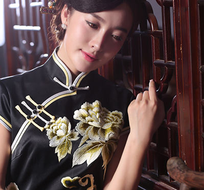 高聳圓潤的傳統(tǒng)旗袍小立領(lǐng),纖細(xì)頸部曲線,隱約透出一抹優(yōu)雅,更添東方女性柔婉嫻靜,古典婉約之美